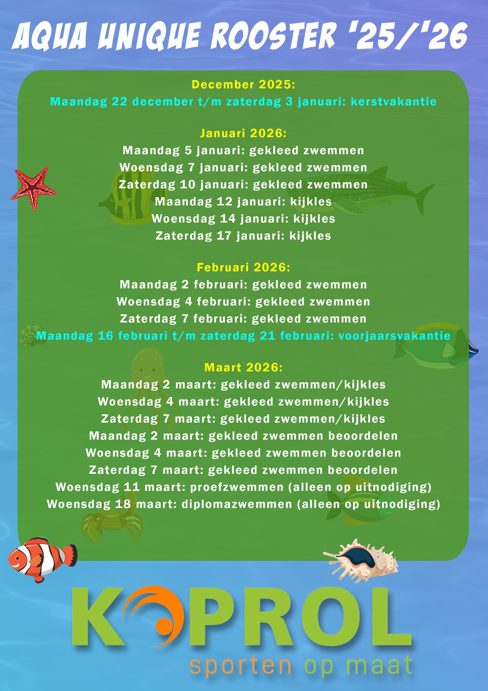 Heb je te weinig geld om voor je kind de kosten voor school, sport, cultuur of een bezoek aan de speeltuin te betalen? Leergeld Nijmegen helpt gezinnen met kinderen tot en met 17 jaar oud met een laag inkomen. Of je nu werkt of een uitkering hebt. Ook de activiteiten van Koprol Aqua Unique komen in aanmerking voor aanmelding bij Leergeld Nijmegen. Kijk voor meer informatie en aanmelden op deze website.