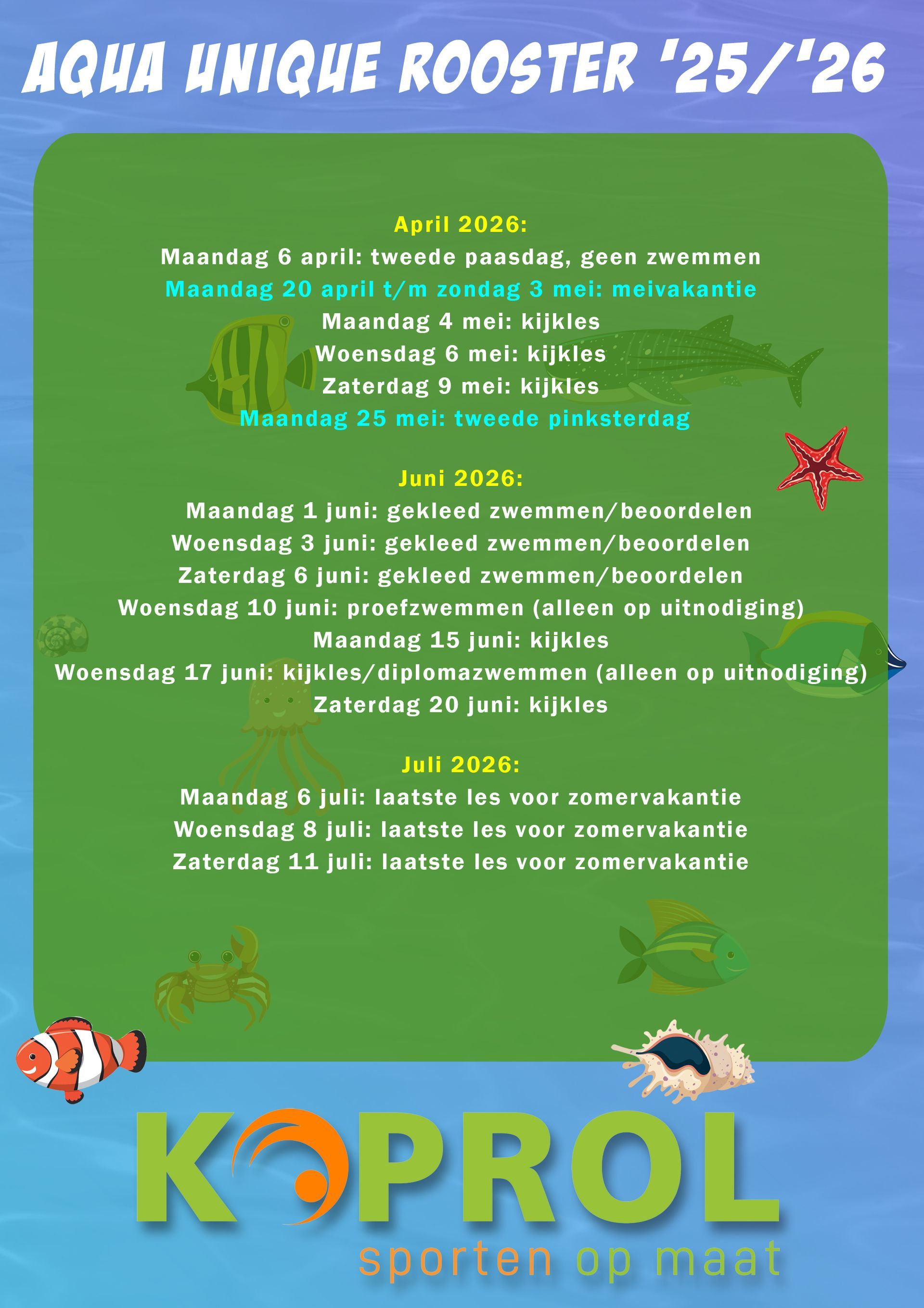 Speciaal voor jongeren die zwemmen om vooral lekker te bewegen, is er ook Koprol Aqua Fun. Plezier hebben in het zwemmen en niet het volgen van oefeningen of zwemlessen staat bij deze groep voorop!