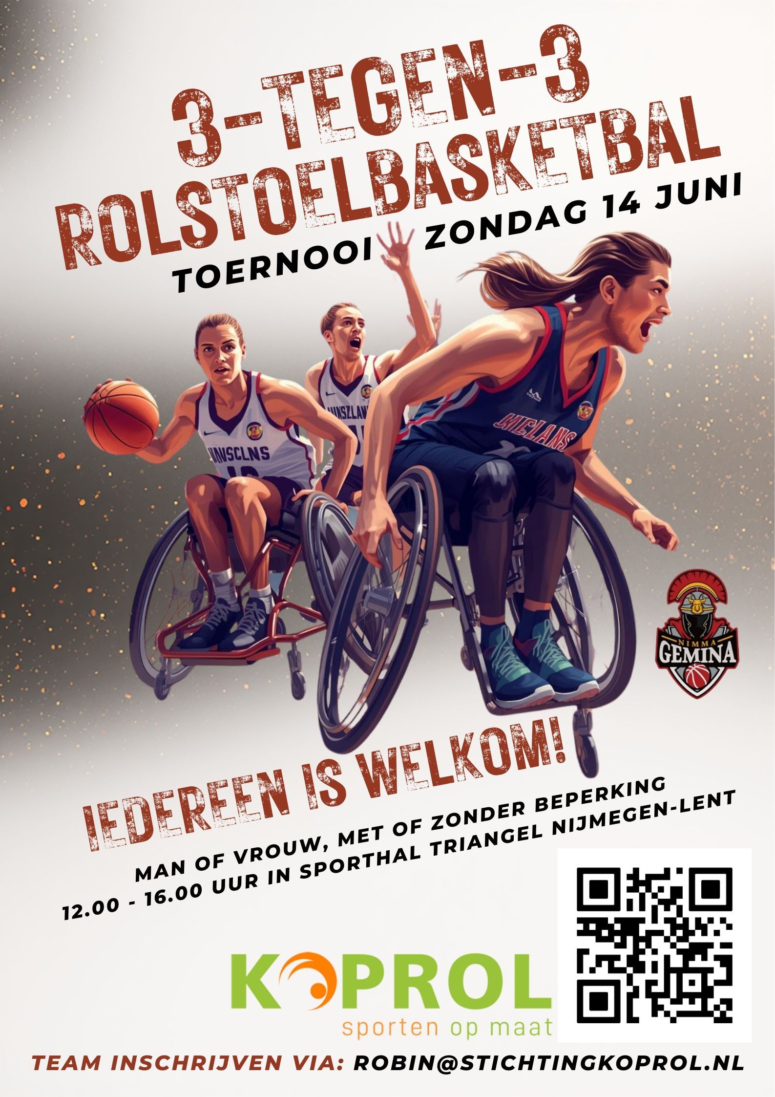 Daag jezelf uit voor het 3-tegen-3 rolstoelbasketbaltoernooi van Koprol en basketbalvereniging Nimma!
